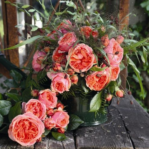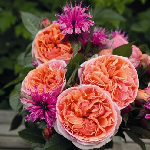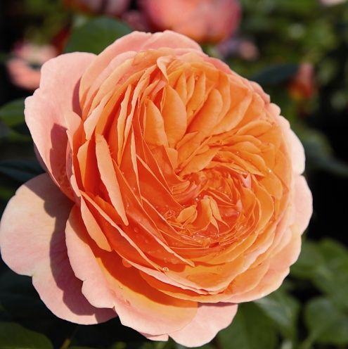 Сильнорослый шраб с темной блестящей листвой из серии ностальгических роз. Цветки насыщенно-оранжевые, очень душистые, густомахровые в старинном стиле. Очень обильное повторное цветение. Цветки очень хорошо стоят в срезке. Подходит для посадки в массивах на клумбах на заднем плане. Высота 80-120 см.