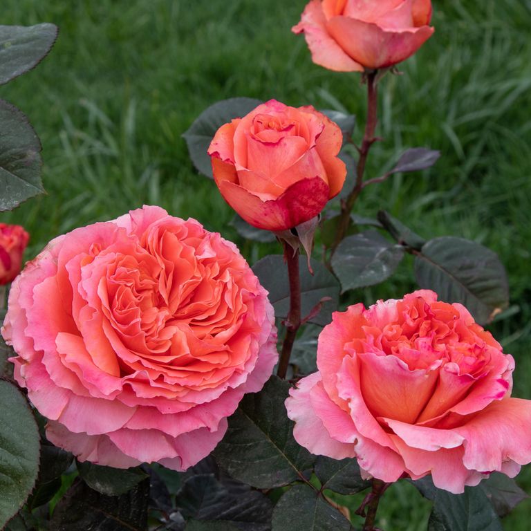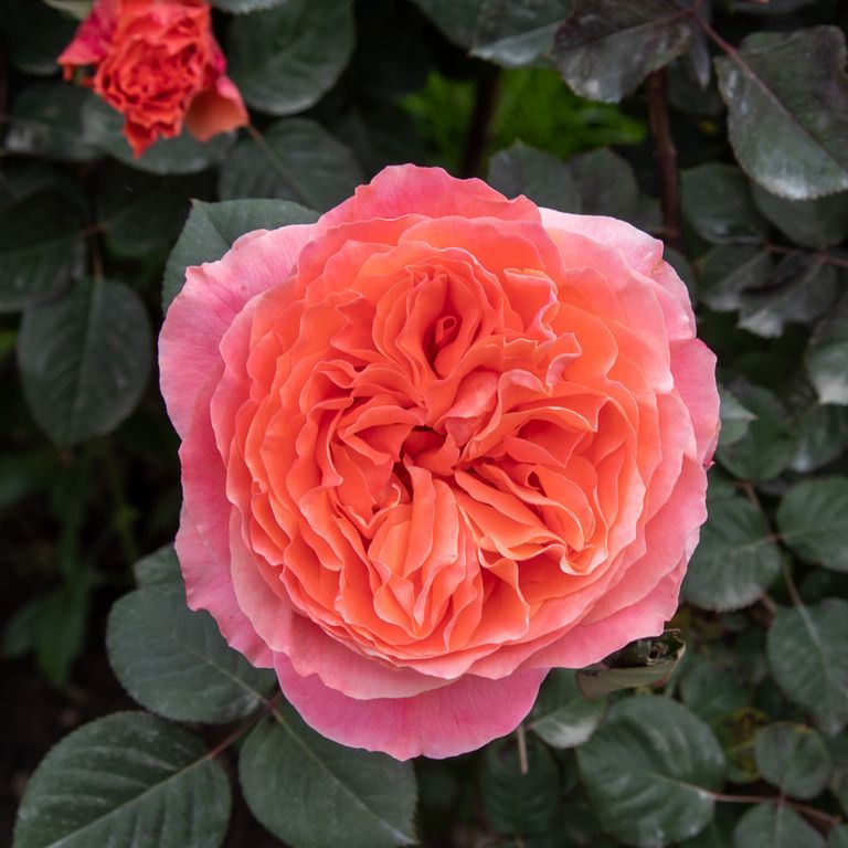 Цвет розы состоит из множества оттенков оранжевого, с розовым отливом. Цветки чашевидной формы состоят из 26-40 лепестков. Аромат умеренный. Может использоваться для срезки.