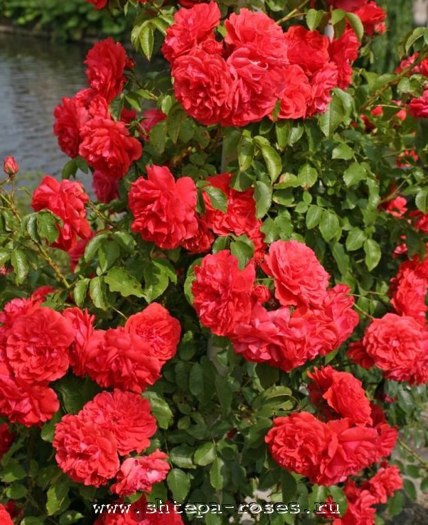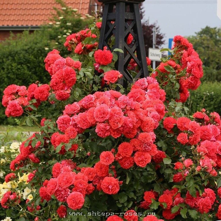Лососево-красные, густомахровые цветки с легким ароматом появляются в кистях из темно-розовых, заостренных бутонов. Цветение обильное, в период массового цветения на одном цветоносе до 5-10 цветков, продолжительное, повторное. Куст мощный, сильнорослый, с прочными побегами и темно-зеленой, сильно-глянцевой листвой.