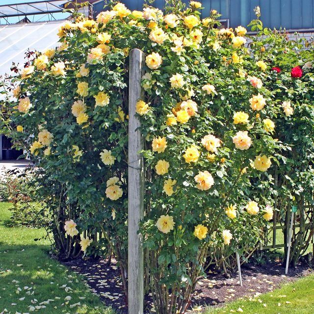Сорт прекрасно подходит для пергол и других опор для роз.